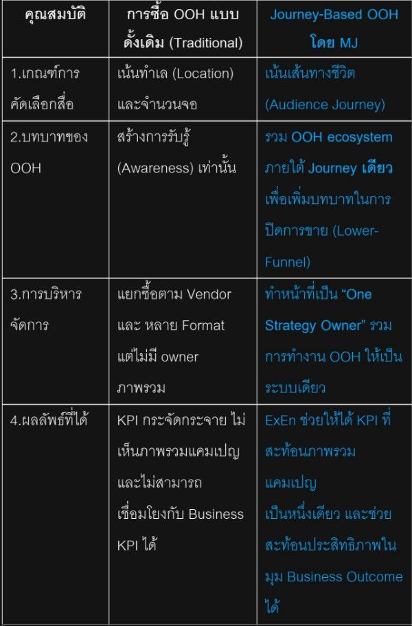 Journey-Based OOH จึงเป็นการวางแผนสื่อนอกบ้านที่ยึดเอา “เส้นทางตัดสินใจ” ของผู้บริโภคเป็นตัวตั้ง แทนที่จะยึดติดกับจำนวนจอหรือทำเลทองเพียงอย่างเดียว”
