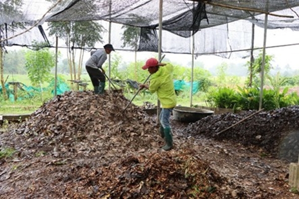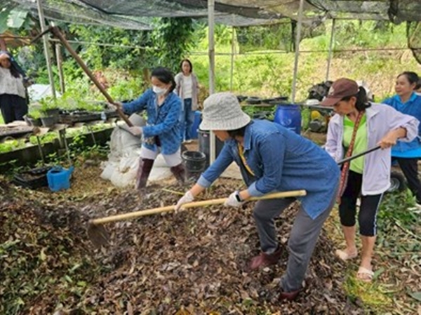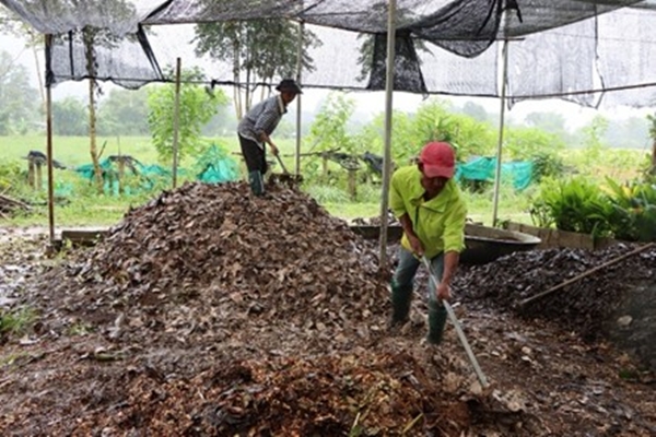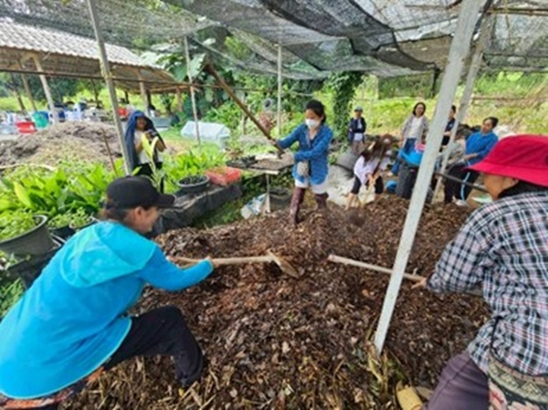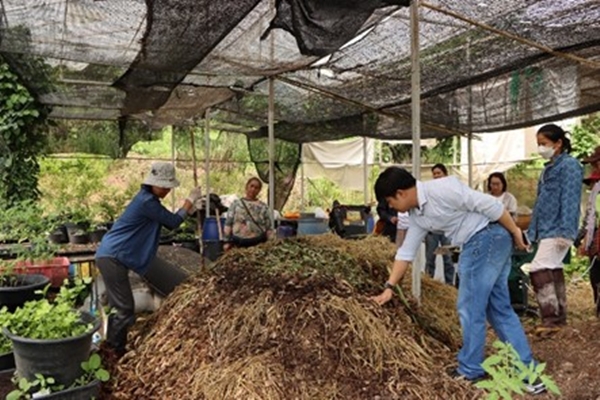 ภาพการทำวัสดุปรุงดินจากเศษวัสดุเหลือใช้ทางการเกษตร กลุ่มดอกไม้อารมณ์ดีบ้านนางแลใน ต.นางแล อ.เมือง จ.เชียงราย