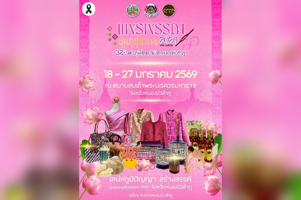 จังหวัดหนองบัวลำภูจัดกิจกรรมงาน “แพรพรรณลุ่มภูสู่สากล 2026” ระดับจังหวัดโครงการส่งเสริมการประชาสัมพันธ์และเพิ่มช่องทางการตลาด ทั้งทางออนไลน์และออฟไลน์วันที่ 18 – 27 มกราคม 2569 เวลา 09.00 – 22.00 น. ณ สนามสมเด็จพระนเรศวรมหาราช จังหวัดหนองบัวลำภู