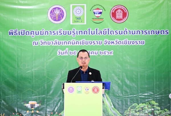 วันที่ 25 มกราคม 2569 สำนักงานการวิจัยแห่งชาติ(วช.) กระทรวงการอุดมศึกษา วิทยาศาสตร์ วิจัยและนวัตกรรม ร่วมกับ สมาคมกีฬาเครื่องบินจำลองและวิทยุบังคับ จัด “พิธีเปิดศูนย์การเรียนรู้เทคโนโลยีโดรนด้านการเกษตร วิทยาลัยเทคนิคเชียงราย” โดยมี ดร.วิภารัตน์ ดีอ่อง ผู้อำนวยการสำนักงานการวิจัยแห่งชาติ เป็นประธาน พร้อมด้วย นายพิศิษฐ์ มิตรเกื้อกูล นายกสมาคมกีฬาเครื่องบินจําลองและวิทยุบังคับ กล่าวรายงาน, นายชัชวาล วงศ์ใหม่ ผู้อำนวยการวิทยาลัยเทคนิคเชียงราย กล่าวต้อนรับ และผู้ทรงคุณวุฒิ วช. เข้าร่วมในพิธี ณ วิทยาลัยเทคนิคเชียงราย จังหวัดเชียงราย
