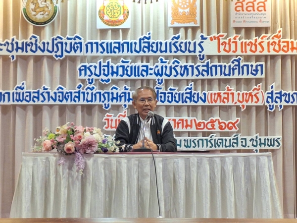 นางกิติกา อินใหม่ รองผู้อำนวยการสำนักงานเขตพื้นที่การศึกษาประถมศึกษาชุมพร เขต 1 กล่าวในนามคณะทำงานว่า การประชุมเชิงปฏิบัติการแลกเปลี่ยนเรียนรู้ “โชว์ แชร์ เชื่อม เชิดชูเกียรติ” ครูปฐมวัยและผู้บริหารสถานศึกษา ภาคใต้ จัดขึ้น มีสถานศึกษาเข้าร่วมรวม 47 แห่ง จากจังหวัดชุมพร ประจวบคีรีขันธ์ และตรัง ประกอบด้วยสถานศึกษาต้นแบบ 35 แห่ง และสถานศึกษาแหล่งเรียนรู้ 12 แห่ง มีผู้บริหารสถานศึกษา 47 คน และครูปฐมวัย 94 คน รวมผู้เข้าร่วมทั้งสิ้น 141 คน เพื่อแลกเปลี่ยนเรียนรู้วิธีปฏิบัติที่ดี(Good Practice) ในการสร้างภูมิคุ้มกันปัจจัยเสี่ยงจากเหล้าและบุหรี่ในเด็กปฐมวัย ภายในงานมีการจัดนิทรรศการแสดงวิธีปฏิบัติที่ดี(Good Practice) การถอดบทเรียนจากสถานศึกษาแหล่งเรียนรู้ เพื่อถ่ายทอดประสบการณ์จริง แนวคิด กระบวนการดำเนินงาน และผลงานเชิงประจักษ์ที่ชัดเจน ซึ่งจะเป็นฐานการเรียนรู้สำคัญในการขยายผลสู่สถานศึกษาเครือข่ายและพื้นที่อื่น ๆ ต่อไป