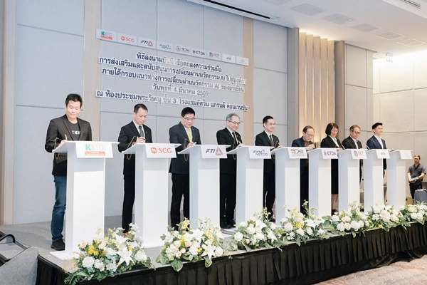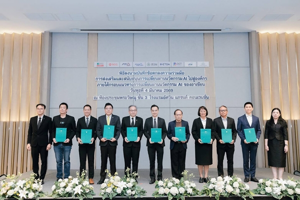 ความร่วมมือ (MOU) การส่งเสริมและสนับสนุนการเปลี่ยนผ่านนวัตกรรม AI ไปสู่องค์กร ภายใต้กรอบแนวทางการเปลี่ยนผ่านนวัตกรรม AI ของอาเซียน จำนวน 9 หน่วยงาน ได้แก่ 1) สำนักงานคณะกรรมการดิจิทัลเพื่อเศรษฐกิจและสังคมแห่งชาติ 2) สำนักงานพัฒนาวิทยาศาสตร์และเทคโนโลยีแห่งชาติ 3) สำนักงานพัฒนาธุรกรรมทางอิเล็กทรอนิกส์ 4) สภาอุตสาหกรรมแห่งประเทศไทย 5) สภาดิจิทัลเพื่อเศรษฐกิจและสังคมแห่งประเทศไทย 6) สมาคมอุตสาหกรรมซอฟต์แวร์ไทย 7) มูลนิธิเพื่อการพัฒนาดิจิทัล 8) บริษัท กสิกร แล็บส์ จำกัด และ 9) บริษัท ปูนซิเมนต์ไทย จำกัด (มหาชน) โดยมีวัตถุประสงค์เพื่อส่งเสริมและสนับสนุนให้เกิดการนำกรอบแนวทางการเปลี่ยนผ่านนวัตกรรม AI ของอาเซียน มาใช้ในการเปลี่ยนผ่านนวัตกรรม AI ขององค์กร และการพัฒนาบุคลากรไทยให้มีความพร้อมในการใช้และพัฒนา AI รวมถึงสร้างเครือข่ายความร่วมมือการพัฒนากรอบแนวทางการเปลี่ยนผ่านนวัตกรรม AI ของอาเซียน ให้รองรับการปรับเปลี่ยนทางด้าน AI และกรอบความตกลงที่เกี่ยวข้องภายใต้ประชาคมอาเซียน ทั้งยังเป็นการร่วมกันแบ่งปัน และเผยแพร่ความรู้ ประสบการณ์การนำ AI มาใช้ในองค์กรอย่างเหมาะสมและปลอดภัย