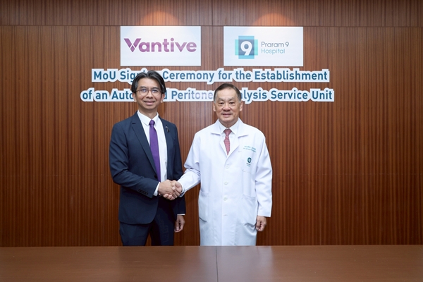 โรงพยาบาลพระรามเก้า ร่วมกับ บริษัท แวนทีฟ เฮลธ์แคร์ (ประเทศไทย) จำกัด (Vantive) ผู้นำนวัตกรรมด้านการดูแลรักษาผู้ป่วยโรคไตระดับโลก ลงนามบันทึกข้อตกลงความร่วมมือเพื่อพัฒนาและเปิดให้บริการ “หน่วยบริการล้างไตทางช่องท้องด้วยเครื่องอัตโนมัติ (Automated Peritoneal Dialysis: APD)” ซึ่งถือเป็นอีกหนึ่งก้าวสำคัญในการยกระดับมาตรฐานการดูแลรักษาผู้ป่วยโรคไตในประเทศไทย พร้อมนำเทคโนโลยีทางการแพทย์สมัยใหม่เข้ามาเพิ่มทางเลือกในการรักษา และส่งเสริมคุณภาพชีวิตที่ดีขึ้นให้แก่ผู้ป่วย